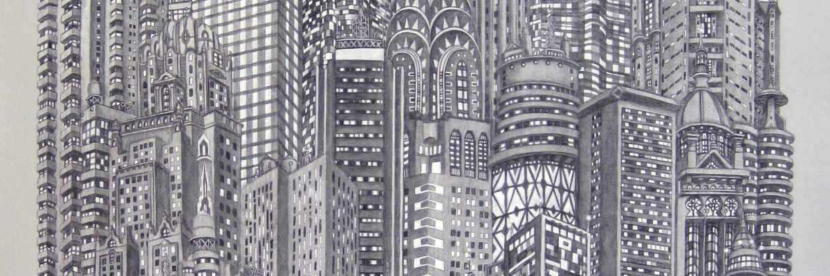 “METROPOLIS.” is a solo exhibition by Alexis Duque, featuring highly detailed paintings of densely crowded cities-not filled with people, but with objects, architecture, and layers of accumulated life. Through precise linework and intricate compositions, Alexis aims to depict elements that inhabit clustered spaces, where nature sometimes reclaims human environments—appearing as post-apocalyptic visions or utopian narratives.